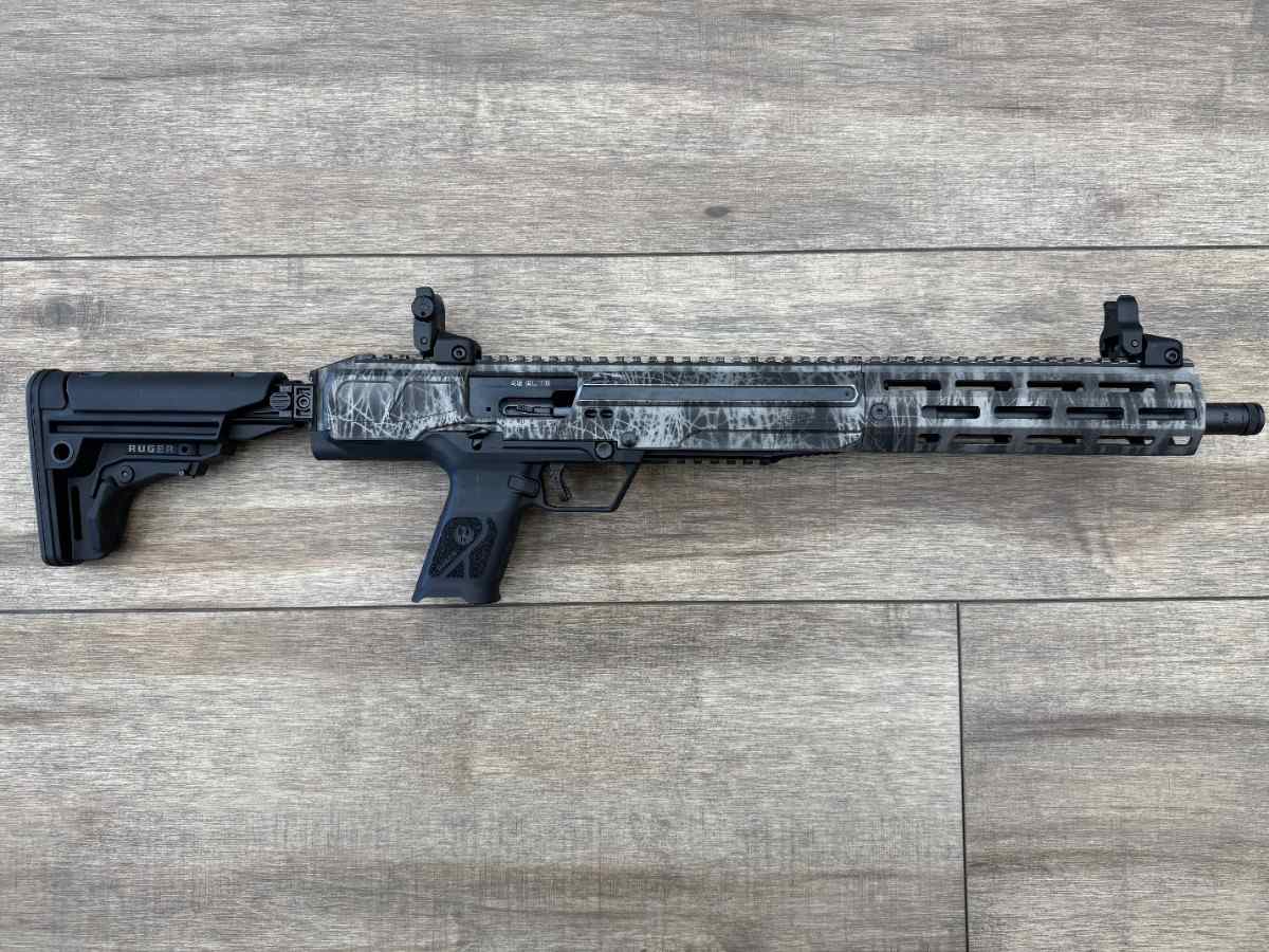 Ruger LC Carbine, Frazzled, TALO Exclusive, Semi-automatic Rifle, 45 ACP, 16.25" Barrel, Threaded .578X28, Ruger Radial Port Muzzle Brake, Anodized Finish, Frazzled Silver, M-LOK Handguard, Magpul MOE SL Stock, Front/Rear Ruger Rapid Deploy Sights, 13 Rounds, 1 Magazine