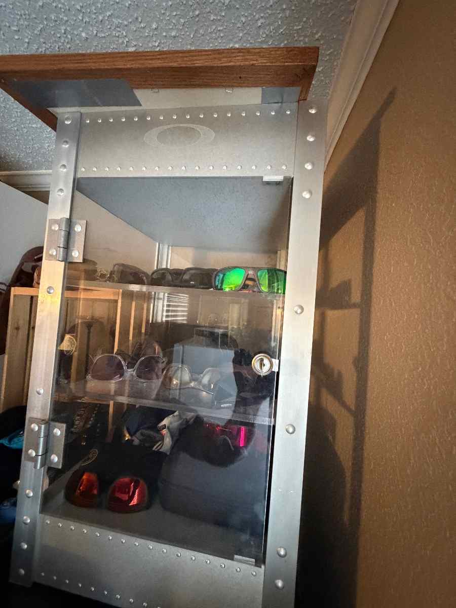 I have an original Oakley Metal Display case. Used for sunglasses but could be used for pistols. All original and these were only given to stores that sold Oakleys back in 2003. All original shelves, the lock, and the key. Price is firm but would consider a trade for a Glock 43 in like new condition with red dot cut. In Waco and it’s a local pick only.