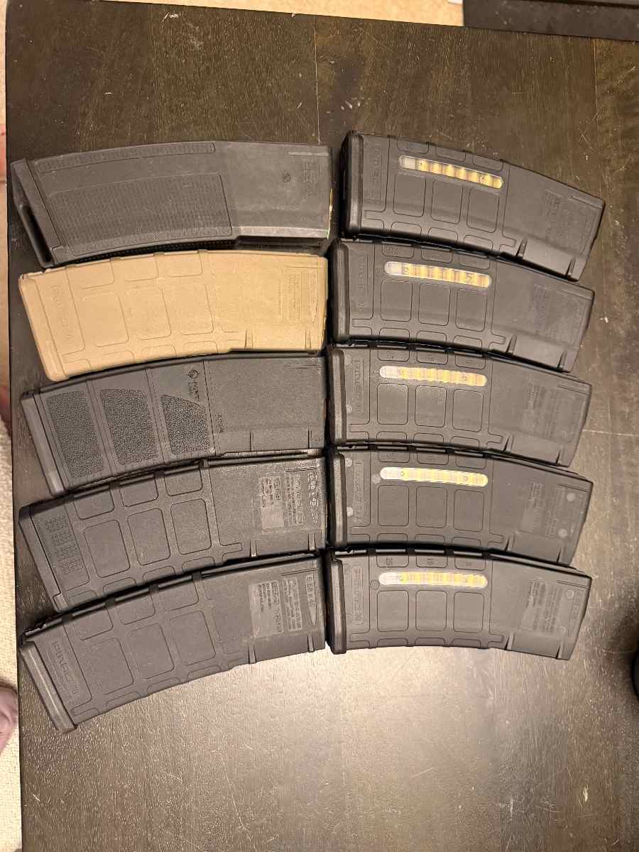 Sold my rifles so these mags are not needed. They are five window P mags and five non-windows mags. They are loaded with 30 rounds each. $350