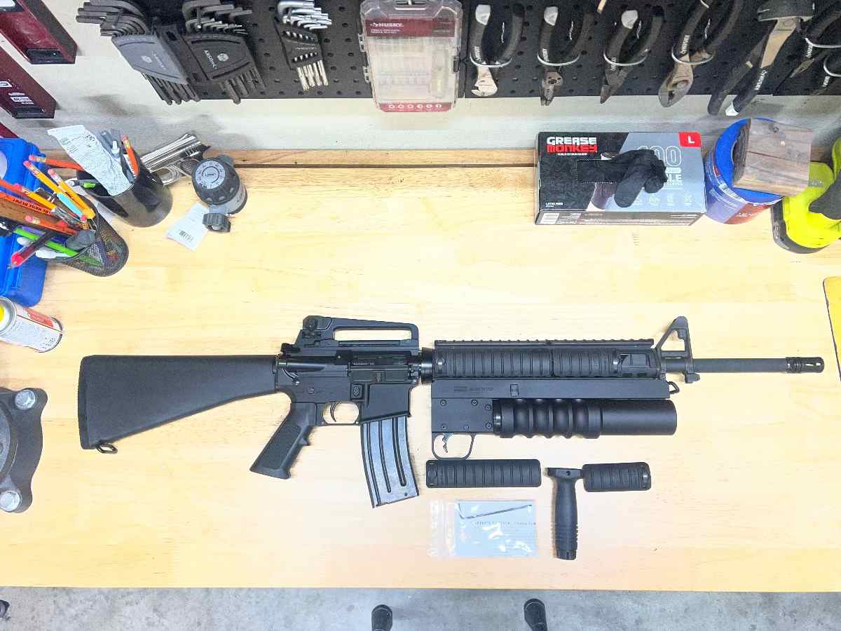 M16A4 Build w/Spike’s Tactical 37mm 12” Havoc Launcher. This build has a Palmetto lower with Mil-Spec Spike’s Tactical LPK. Upper is Palmetto’s as well but has the FN CHF Heavy Machine Gun Barrel. Daniel Defense BCG. Knights Armament handguard, forward grip and rail covers. The only parts that are PSA are the receivers and carry handle. The rest are Mil-Spec. Can also sell without launcher.
