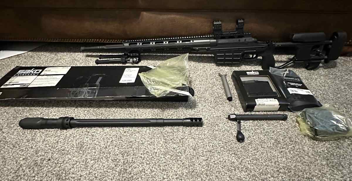 I am listing up my M10 here. I believe this rifle could have been a police trade-in. However, the components have very little wear and tear. Package would include the rifle, the 20 inch barrel .308 caliber kit, the 24 inch .300 win mag caliber kit (currently installed), 2 .308 mags, 2 .300 WM mags, and the caliber change spanner wrench. Can include the atlas bipod or spuhr mount for extra. Asking $9000 for the whole package - selling for at cost or under. Rifle $8,500, mags- $300, caliber kit = $1,600. 7-one-3-8-two-4-6-8-7-two