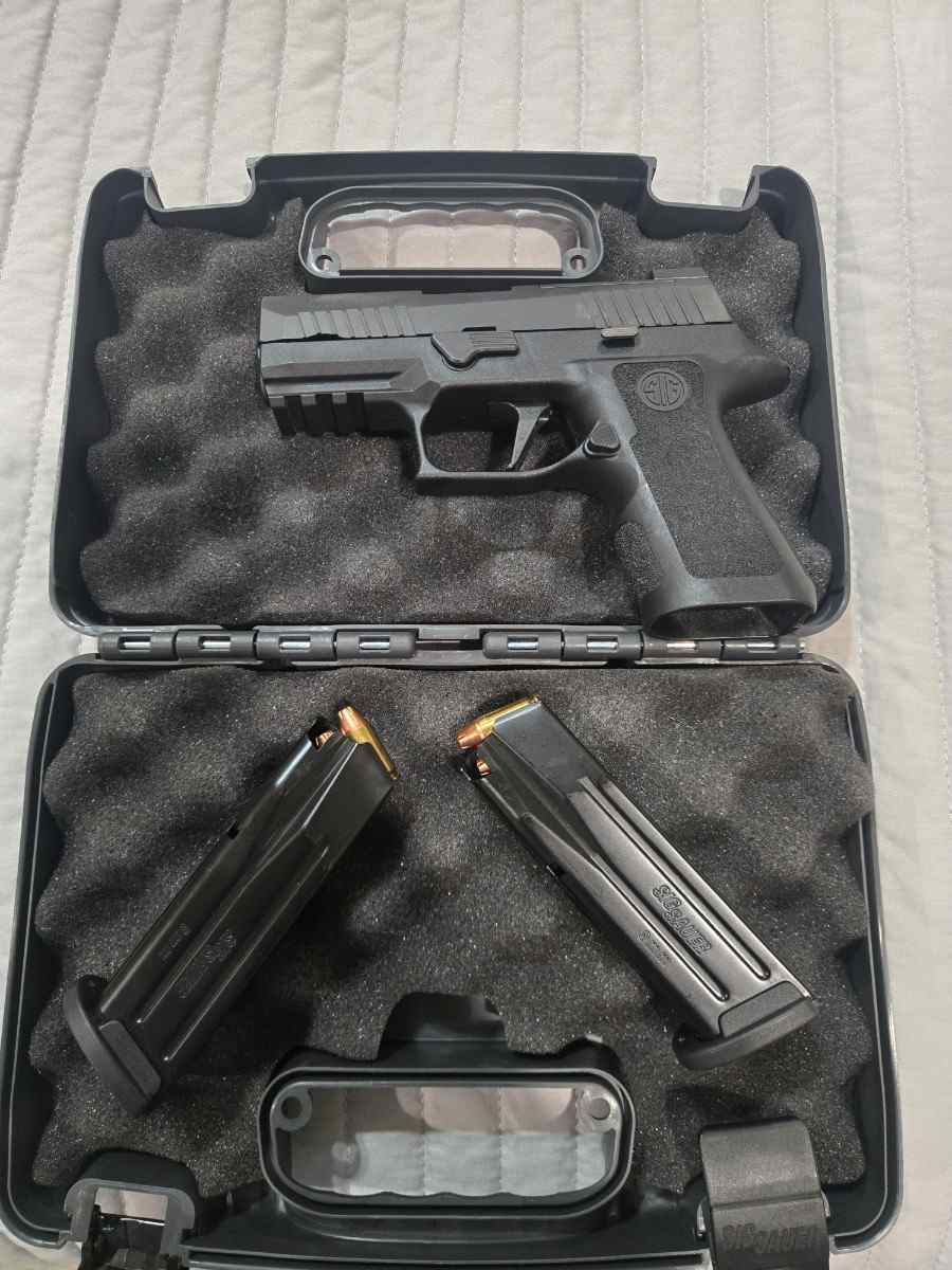 Sig Sauer P320 Compact 9mm w/ XCarry Grip & Straight Trigger, 2-17rd. Mags & Night Sights. Perfect as a carry gun, this P320 pistol from Sig Sauer is chambered in 9mm and features a 3.9" barrel with Trijicon Day/Night sights on the slide. This handgun has been verified with Sig Sauer as NOT needing an upgrade due to the recent recall.