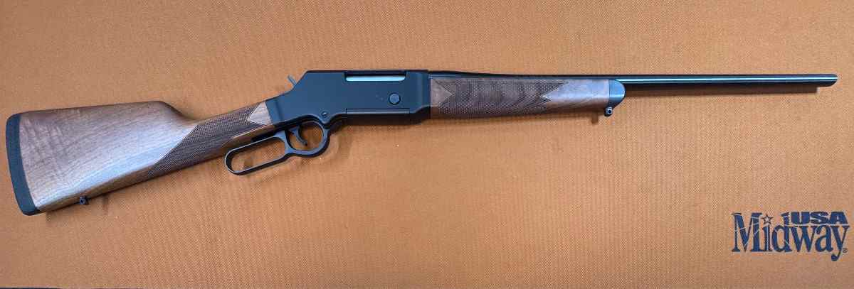 With side ejection and a lightweight aerospace alloy receiver, the top is drilled and tapped for scope mounts, and the bottom features a steel-bodied flush-fit detachable magazine (5-round capacity in .223) with a steel floorplate and a blackened steel release button on the right side of the receiver. All behind a 20” round and blued free-floated sporter barrel, and supported by a two-piece oil-finished American Walnut stock with precise laser-cut checkering, sling swivel studs, and a solid black rubber recoil pad for both recoil control and non-slip anchoring on the shoulder for the rapid follow-up shots where lever actions excel. Like our other centerfires, the Long Ranger carries on the in-hammer sliding transfer bar as a safety, instead of a manual safety button or slider that can be hard to operate with gloves.