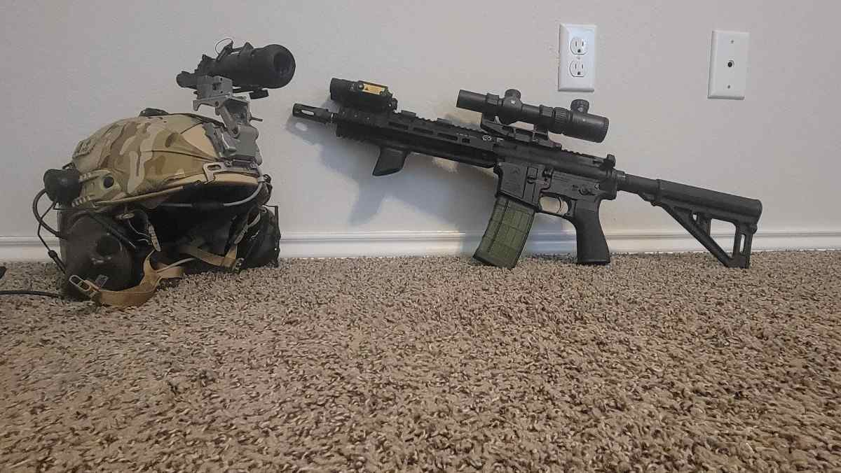 Helmet- CPG Armor balisitic. 44mag rated. First spear helmet cover. Peltor comtacs work and have new gel cups. Team wendy style chin strap.