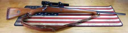 This particular consignment rifle is a bit unique. It’s a sporterized model that is in great condition and great looking. The owner says that it’s a real shooter as well. He has the scope zero’d at 200 yards. The safety has also been modified to work with the scope as mounted. In the photos we show the safety in both the Safe and Fire modes.