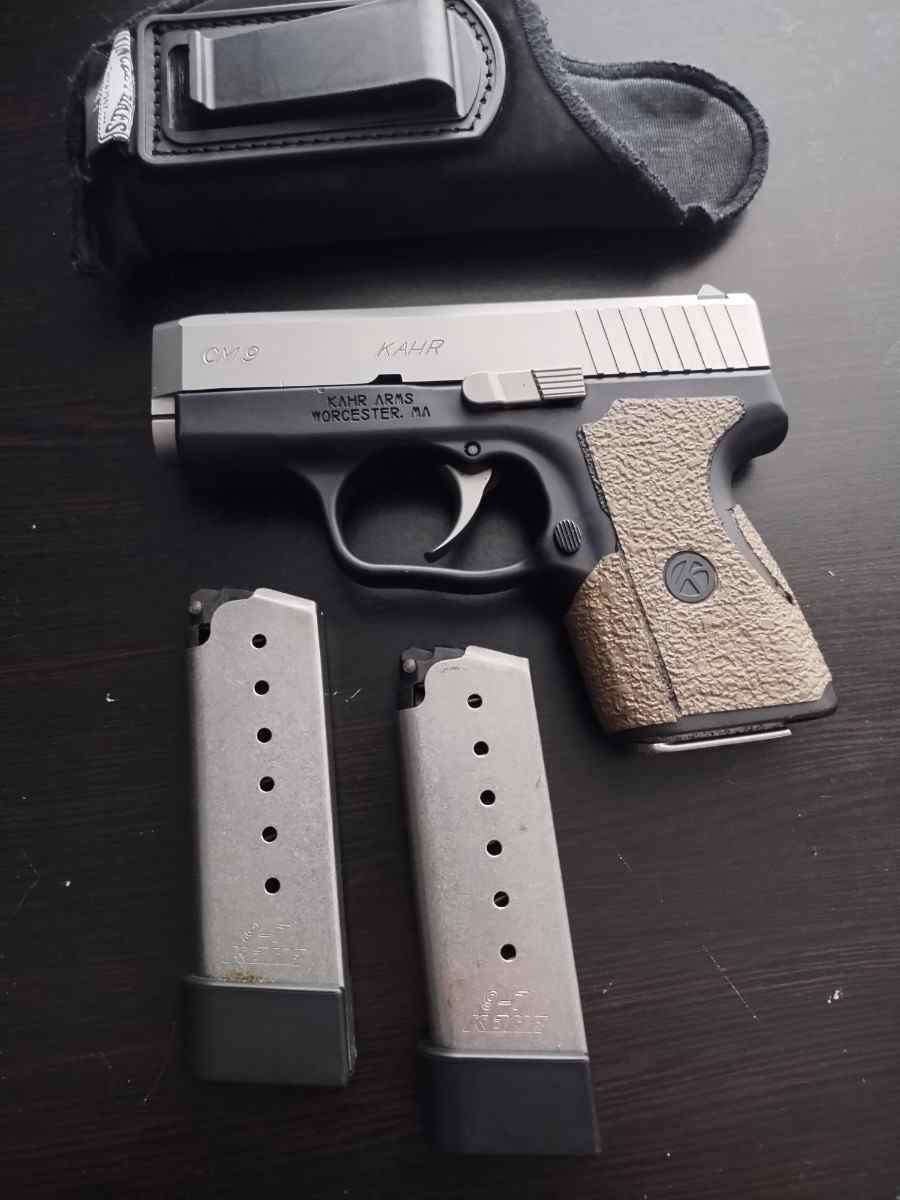 Kahr CM9, nice shooter perfect for deep concealment with sz1 uncle mikes iwb holster. I got the itch for something new, so considering parting ways with my cm9 to find whatever that might be.