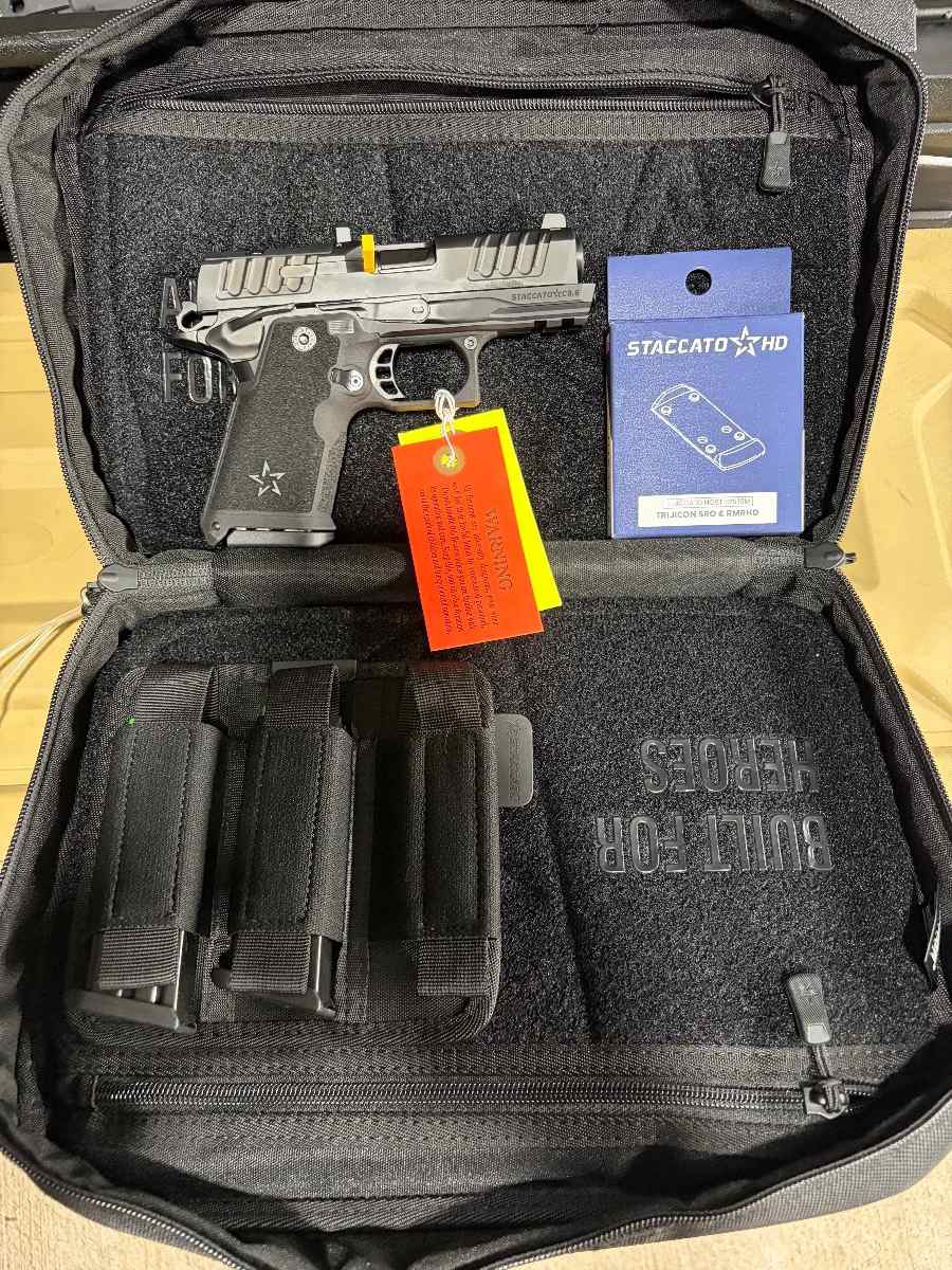 For sale brand new staccato HD C3.6 preferred package with DLC barrel. Never fired. Comes with mounting plate for RMR HD/SRO.