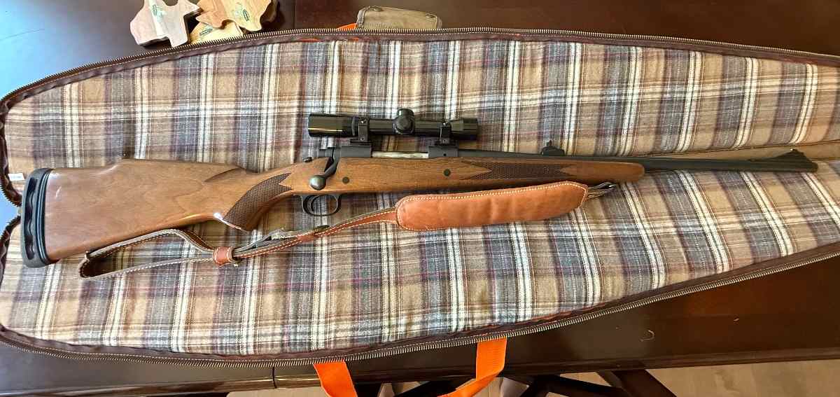 Model 670 chambered in 30-06 w/ 6x Burris optic, rifle case, buttstock pad, and the original buttstock pad (inside case).