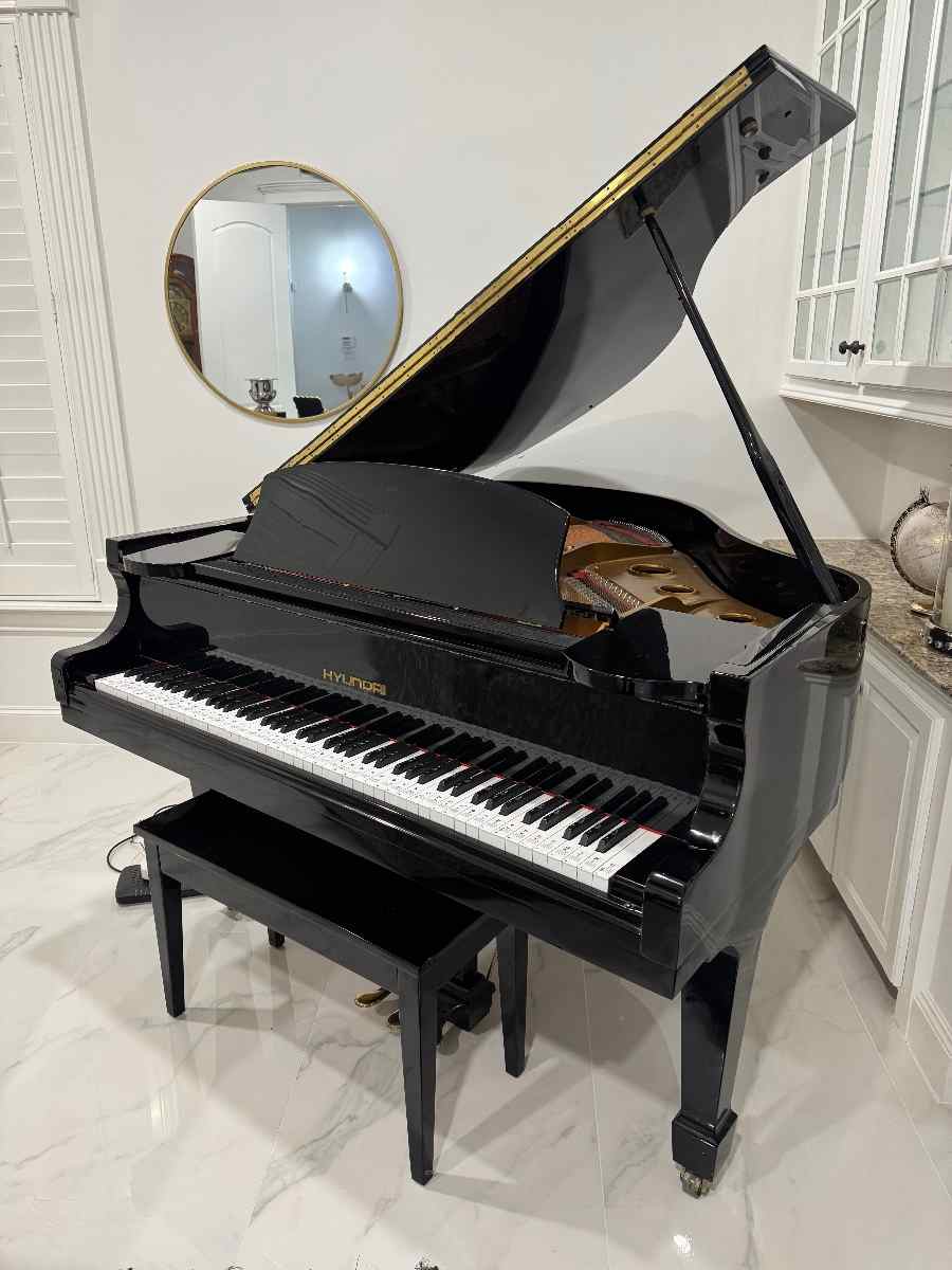 Excellent condition Hyundai baby grand piano. Gloss black finish, very clean inside and out. Plays smooth, sounds great, well maintained. Matching bench included.