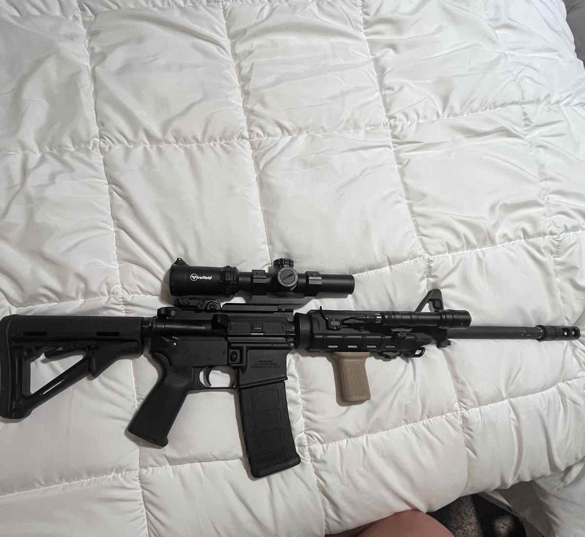 Bushmaster AR-15 rifle, comes with a Firefield RapidStrike 1 - 6 X 24 SFP Riflescope, SureFire muzzle brake, weapons light with switch, magpul handguard, magpul stock. Also can include original A2 handguard & stock. $800 cash
