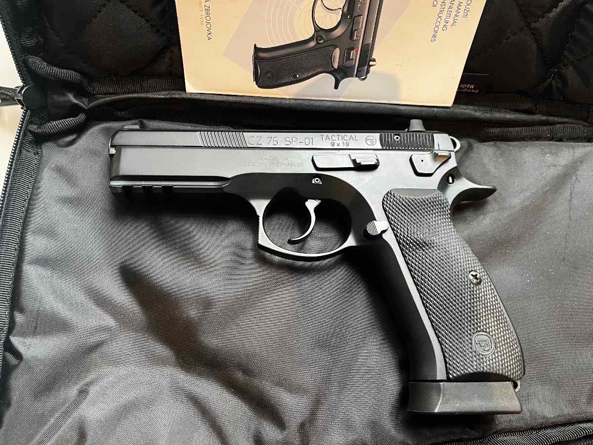 For sale is a CZ 75 Sp-01 tactical in 9mm. Comes with several magazines, the original manual, and a case. Price is 650 firm.