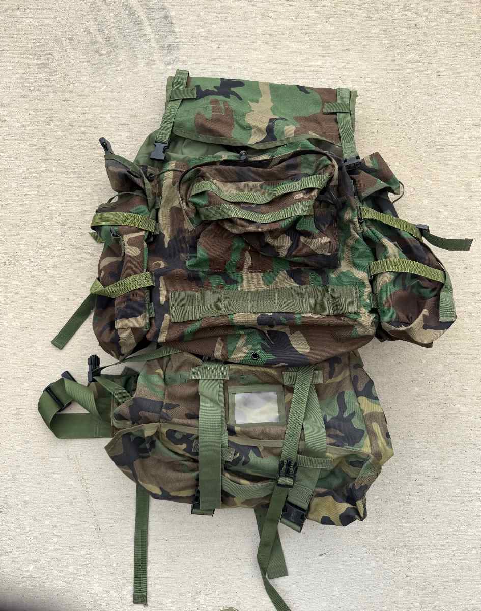 Great condition US Army Molle rucksack in m81 woodland camo. Comes with frame, straps, sustainment pouches, sleep system, and radio pouch $200 DFW area, not looking for trades
